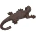 Gecko / lizard statue. Cast Iron. Colour: Brown. Has screw holes in each foot so can be mounted on a wall, door etc.. Finished with a durable paint, this ornament may weather and age in time when used outside. Ideal gift, authentic rustic finish that will complement any garden. This ornament is perfect for in the garden or around the house. Length: 18.5cm Height: 3cm Width: 11cm This item is NEW, but comes in "Rustic" condition and is being sold as pictured.