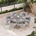 Experience outdoor dining at its finest with the LUNA 150cm Ellipse Concrete Table paired with six stylish Sol Rattan Chairs. This elegant set combines modern materials and chic design, making it the perfect centerpiece for your patio, garden, or balcony. The spacious elliptical table provides ample room for family gatherings and entertaining, while the comfortable rattan chairs invite relaxation and style.