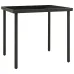 Colour: Black and anthraciteTable material: Tempered glass, powder-coated steelTable dimensions: 80 x 80 x 72 cm (L x W x H)Assembly required: Yes