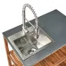 Bring practical charm and natural beauty to your outdoor space with this compact outdoor kitchen island with sink. Crafted from solid acacia wood and topped with a sleek, durable steel surface, it blends rustic character with modern functionality. The integrated stainless steel sink and professional-style faucet make rinsing produce, washing hands, or cleaning up after grilling effortless. The slatted open design offers two spacious shelves for storing BBQ tools, dishes, or garden accessories. Rust- and UV-resistant, this kitchen island is built to withstand outdoor conditions, making it a versatile and stylish solution for patios, balconies, or garden kitchens.