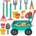 Outdoor Pull along Wheelbarrow and Gardening Tools Play Set with accessories, Plant Pots, Shovels, Watering Can ect