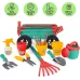 Main attributes Outdoor Pull along Wheelbarrow and Gardening Tools Play Set with accessories, Plant Pots, Shovels, Watering Can ect