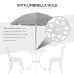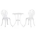 - ● Colour: White; ● Material: Aluminium; ● Table Dimension: Φ60 x 67Hcm; ● Each Chair Dimension: 42.5W x 47.5D x 89Hcm; ● Seat Dimension: 37W x 37D x 41Hcm; ● Umbrella Hole Diameter: Φ44mm; ● Weight Capacity: 30kg (Table), 110kg (Chair) ● Item Label: 84B-500WT;