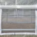 - - Colour: White; - Material: Galvanised Steel, PE; - Overall Dimension: 3.97L x 3W x 2Hm; - Front Door Size: 1.72W x 1.7Hm; - Side Cover Roll-up Height: 1.5m; - Window Size: 40L x 45Wcm; - Windproof Level: 4; - Item Label: 845-612V01WT; - NOTE: 1. Please do not use acidic farm chemical to avoid chemical reactions with the alkaline PE cover, which result in breakage; 2. Not suitable for bad weather conditions