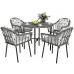 - Five-piece outdoor dining set: A tall round table, with four dining chairs - sit down and dine with company outdoors, whenever you want.