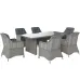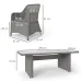 - ● Colour: Mixed Grey; ● Material: Aluminium, PE rattan, Polyester; ● Table Dimension: 200L x 100W x 74H cm; ● Chair Dimension: 65L x 75W x 92H cm; ● Seat Size: 52W x 50D cm; ● Seat Height (without cushion): 40 cm; ● Backrest Size: 55L x 50W cm; ● Weight Capacity: 160 kg(chair), 70 kg(table); ● Item Label: 861-055V70GY;