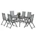 - Seven-piece outdoor dining set: Includes a rectangular table and six matching folding chairs. Sit and enjoy meals, drinks and relaxation outdoors with family or friends.