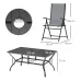 ● Patio furniture set comes with a rectangular dining table and six matching folding chairs; ● Texteline fabric panels on the chairs are comfortable and breathable; ● Φ50mm hole in the table to hold a Φ38-Φ48mm pole parasol. Allows you to be safely shaded; ● Metal tabletop is tough and easy to maintain. Excellent place to dine; ● Galvanised and powder coated steel pieces are strong, suitable for outdoors; ● Easy to assemble;