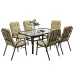 Description Outsunny 7 PCs Garden Dining Set w/ Umbrella Hole & Cushion, Beige