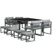 - • Color: Dark Grey, Grey; • Material: Aluminum; • Table Dimension: 126L x 126W x 72H cm; • Each Chair Dimension: 60W x 60D x 66.5H cm; • Each Ottoman Dimension: 45W x 45D x 30H cm; • Seat Dimension: 42W x 58D x 52H cm; • Armrest Height (off the ground): 70cm; • Ottoman Seat Cushion: 45W x 45D x 8T cm; • Chair Seat Cushion: 42W x 58D x 5T cm; • Chair Back Cushion: 52W x 30Dcm; • Weight Capacity: 70kg (Table), 160kg (Chair), 110kg (Ottoman); • Item Label: 84B-479;