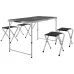 ● Camping set includes a folding picnic table and four chairs; ● Table height is adjustable between 55-70cm. Set it to the most comfortable level for you; ● 3cm table hole to hold a parasol umbrella; ● Aluminium pieces are strong and supportive. Foldable to carry and store easily; ● Perfect for camping, festivals and other outdoor activities;
