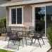 Relax with company, with this Outsunny five-piece dining set. Powder coated metal frames mean strong structures. Φ4.2cm central hole in table to hold parasol - keep shaded as you're all seated. Set includes: Four foldable armchairs and a matching square dining table.