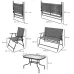 ● Colour: Dark Grey, Mixed Grey; ● Material: Steel, Tempered Glass, Breathable Mesh Fabric; ● Armchair Dimension: 53W x 65D x 85H cm; ● Loveseat Dimension: 108W x 65D x 85H cm; ● Table Dimension: 70L x 45W x 47H cm; ● Armchair Foldable Size: 53W x 85.5D x 9H cm; ● Loveseat Foldable Size: 108W x 85.5D x 12H cm; ● Single Seat Size: 43W x 41D cm; ● Loveseat Seat Size: 96W x 41D cm; ● Seat Height: 42 cm; ● Weight Capacity: 25kg(coffee table), 120kg(each chair), 220kg(loveseat); ● Item Label: 84G-273V00GY;