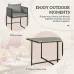 An inviting setting for all great for garden and other outdoor areas: this Outsunny five-piece garden set. It comes with four armchairs and a square dining table - room for you to sit down and gather round together. Solid metal for a strong frame, with plastic wicker for the chairs to offer double the durability; the fringed design creates a very cool look. The wood-effect plastic tabletop is tough and easy to clean. Both chairs and stools come with padded cushions for comfort.