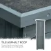 • Asphalt roof: Stops light/medium rain soaking through this wooden shed.