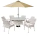 Description Palmera Rattan Stacking 6 Seat Dining Set in Sandy White with 2.7m LED Parasol and Base