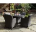 The Paris 4 seater dining set comes complete with 4 imperial dining chairs, with weather shield seat and back cushions and a floating, tempered glass top table with built in parasol hole. It is the perfect setting for outdoor lunch or dining or to simply relax with a drink. Made from the highest quality polyethylene double round wicker around a rigid aluminium frame its durable and weather resistant, making this set the ideal choice for dining with friends and family.