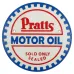 Pratts Motor Oil sign / plaque. Cast Iron. Sign reads "Pratts Motor Oil, Sold Only Sealed". White background with Red/Blue raised writing and outline. 2 screw holes. Antique style finish. Great on a fence, gate, door, garage or workshop. Length: 24cm approx. Width: 24cm approx. Depth: 5mm approx. This item is NEW, but comes in "Rustic" condition and is being sold as pictured.