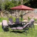 Description Primrose 6 Seater Reclining Garden Furniture Dining Set with Reversible Cushions and Crank Parasol in Wine