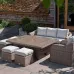 Primrose Living Classic Rattan 8 Seater Garden Furniture Sofa Set with Rectangular Rising Table and Parasol in Stone