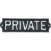 Product informationPrivate sign. Cast Iron. Black background with white raised writing and black outline. 2 screw holes, 1 in the centre of each end. Antique style finish. Great on a fence, gate or door. Length: 21cm app...