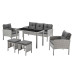 Main attributes Roma Wicker Style Garden Dining Set in Grey Footstools Sofa Chairs Table Black Glass Table Top