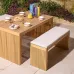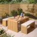 The Rowlinson Kyoto 4 Seat Dining Set has a unique and contemporary design. The horizontal slats will add a modern, contemporary look to any dining area and can be used both indoor or outdoor. Cushions included.Table Dimensions (HxWxD): 75.5x150x90cmBench Dimensions (HxWxD): 50x120x40cmSeat Dimensions (HxWxD): 50x120x40cmCushion thickness: 4cm