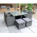 The Paris 8 seater cube set, with its timeless design and practical space saving storage is one of our best selling products. Retaining classic style with its aluminum framework and hand-woven, synthetic, double half round weave rattan, it offers style, comfort, strength and durability. This set comes complete with a 125 x 125cm rectangular cube table, 4 cube chairs with folding backrests and 4 footstools that store away compactly inside the chair, its cubic design allows it all to store away ensuring minimal space is taken up. This set features weather shield cushions seat and back cushions which are stain resistant and water resistant.