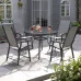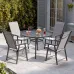 Reviews about Set of 5 Black Tempered Glass 4 Seater Garden Furniture Set Outdoor Coffee Round Table and Foldable Chairs Set 105 cm