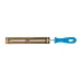 Round file designed for sharpening chainsaw chains quickly and accurately. Attached guide plate holds file at correct depth, clear markings for easy angle alignment.