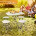Description Small Folding Table & 4 Folding Stool Set - Built-in Handle & Protective Feet - Ideal for Kitchen, Desks, Camping & Extra Seating