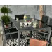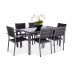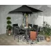 Sorrento 6 seater Set - 150x90cm Black glass table, 6 x padded chairs including parasol Make the most of your garden with this Royalcraft Sorrento Black 6 Seat Padded Garden Set that is stylish, practical and virtually maintenance free. This garden furniture set is manufactured and designed to the highest standards with powder coated aluminium and tempered safety glass, to offer you a durable and sturdy garden furniture set that will last for many years to come. The chairs have padding in them for optimal comfort. Features: Material: Aluminium & Textylene Colour: Black Modern and contemporary design Easy Maintenance All-weather Fabric Padded Chairs for comfort Set Includes : 6 x Padded Chairs 1 x Rectangular Table 1 x Parasol Assembled Dimensions: Table: W150 x L90 cm x H70cm Chairs: W56cm x L56cm x H87cm Box Dimensions: BOX 1: H: 8cm W: 95cm x L: 155cm BOX 2: H: 87cm x W: 56cm x L: 103cm BOX 3: H: 14cm x W: 14cm x L: 140cm