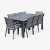 The tabletop with its aluminium slats and sleek design is comfortable and easy to maintain. Textilene is a new weather resistant material intended for outdoor use. Aluminium will not rust in moist conditions guaranteeing the durability of your garden set over time. The table extends from 1.75m to 2.45m so you can welcome even more guests. Its stacking chairs make storage a breeze. The extension system is very simple: you need only pull the ends of the table and unfold the integrated butterfly extension. And for storage just repeat!Its elegant design will make it a perfect match for any outdoor or indoor space. The aluminium frame is coated in epoxy paint to give it an attractive uniform colour.Technical features:Aluminium frameComfortable armchairs in padded textilene which adapt to your body while letting it breathe on hot daysSturdy weather resistant synthetic fabricVery easy maintenance. The table top is made from aluminium slatsDimensionsTable: L173/244 x D100 x H75cmArmchair (x2): L57 x D57 x H89.5cmChair (x6): L47 x D57 x H89.5cm