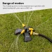 - RANGE OF MOTION: Just turn on the household faucet, 3 rotating arms with spray nozzles of the lawn sprinkler automatically spray 360 degrees at a constant speed by the household water pressure