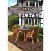 Four traditional chairs | One rectangular table (L-1370mm, W-950mm, H-800mm) | Complete with hole for parasol | Traditional four-seater dining set | 10-year rot-free guarantee | Treated with an oil-based water repellent preservative | All materials MT-sourced