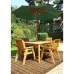 Four traditional chairs | One square table | Complete with hole for parasol | Traditional four-seater dining set | 10-year rot-free guarantee | Treated with an oil-based water repellent preservative | All materials MT-sourced