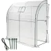 Walk-In Lean-to Wall Greenhouse - Heavy Duty Garden Plant Grow House with 2 Zippered Roll-Up Doors
