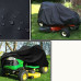 Dimensions (L x W x H): 183 x 137 x 117 cm. Designed to fit all standard size riding lawn mowers. Material: Made of high quality 210D polyester, it can withstand harsh weather and protect your riding lawn mower. lawn from heavy rain, strong wind, and snow. FULL PROTECTION: All mower/tractor covers protect your tractor from harmful pollution, rain, UV rays, snow, dust, and birds. EASY TO USE: The elastic hem ensures the lawn mower cover fits snugly, so the cover won't blow away in windy conditions.